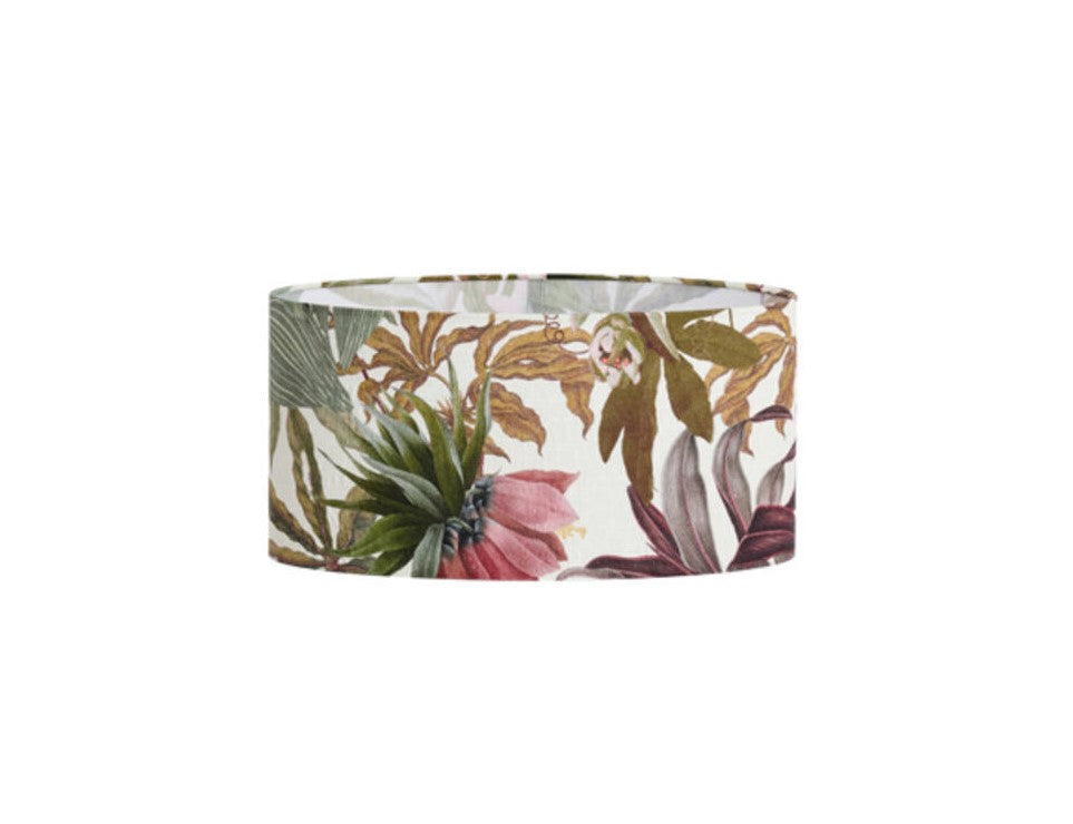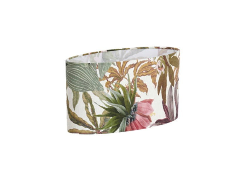Ovaler Lampenschirm mit Blumenmotiv.